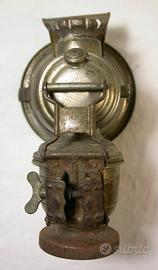 Contatti prego Tel. Voce : 333 - 4402586. Lampada Antica da Bicicletta, o motociclette, probabile uno dei primi modelli fine 1800 primi 900, molto rara, quasi introvabile, penso sia ad Acetilene o Carburo, reduce di antiche tecnologie e sistemi del passato ormai perduti. Stupenda in mostra nel vostro ufficio commerciale, esposta nei vostri salotti come curiosità per i vostri ospiti, nonché nelle Vetrine Vintage di Biciclette e Motociclette come attrazione. Oggetto da Museo e collezioni importanti, raccolte di antichità. Misure : Altezza Cm. 16 x 13,5 Diametro frontale Cm. 11. Cedo con formula Visto e Gradito, prego no messaggini, soltanto telefono Voce, grazie.