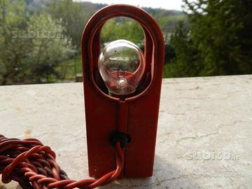 Lampada di emergenza da auto degli anni 50 è marchiata philips, ha un lungo cavo con le pinzette per essere attaccata direttamente alla batteria. E' presente un trasparente rosso per segnalare un ingombro.