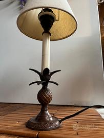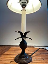 lampada da tavolo d’epoca, realizzata in bronzo e avorio lavorato con dettagli decorativi a forma di un ananas a rilievo ispirato alla natura,
