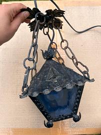 Vendo piccola lampada da esterno in ferro battuto e vetro di 4 tipi diversi, vecchia anni 50/60. Collezionismo, antiquariato, mercatini, usato, antico