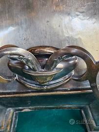 Bellissimo portacandele da parete fine ottocento stile Art Noueau con incisa nave vichinga o drakkar nella parte frontale lucidata a specchio applique (credo in ottone) con due bracci per le candele in legno ma già elettrificato lampadine in ottime condizioni molto decorativo INFO 3283615927 Leggete Tutto Grazie Se avete dubbi contattatemi prima di fare offerte, per evitare errori ed incomprensioni da entrambi le parti, la mia attività è di recuperare oggetti USATI e di seconda mano, quindi guardate le foto che rappresentano ciò che si sta comprando ed è ciò che riceverete. Non ho responsabilità sulla spedizione e sui corrieri l’imballo verrà eseguito con cura. Grazie VECCHIOMANONTROPPO