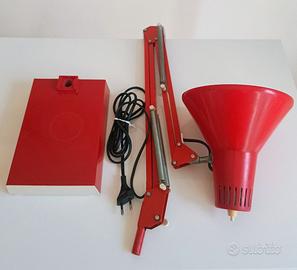 Lampada da scrivania in metallo smaltato colore rosso, vintage, anni '70. Stile industriale. Ottime condizioni