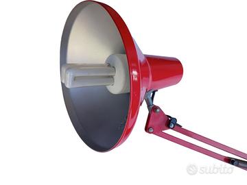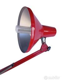 Lampada da scrivania in metallo smaltato colore rosso, vintage, anni '70. Stile industriale.