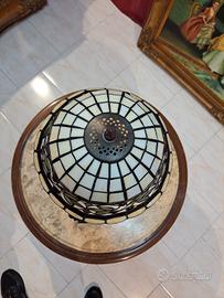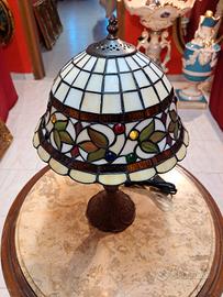 Lampada stile Tiffany da scrivania , nuova perfetta , realizzata in vetro colorato e saldato tra loro mediante zinco e rame. Gambo in metallo bronzato.