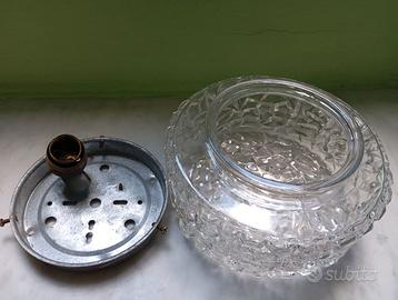 lampada da soffitto in vetro in buone condizioni nonostante il tempo trascorso in garage, mancano alcune viti e quelle che ci sono , sono arrugginite.