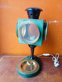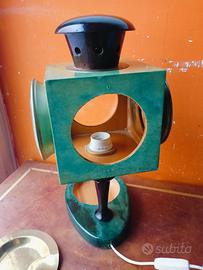 Lampada da tavolo lanterna Aldo Tura degli anni 50 originale, Made in Italy, altezza 45 cm circa, misura base 25x17 cm circa, posacenere in ottone adattato, non è presente un vetro con la sua cornice di ottone, così come da foto. Pesa 2,6 kg circa.