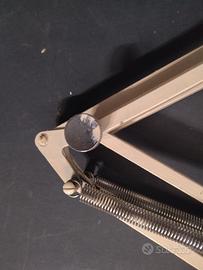 In ottime condizioni e funzionante, è stata riverniciata nel tempo con questo colore avorio, un origini era grigia come lo si può vedere dalla foto del morsetto, la peculiarità di questa lampada e l'accensione che non è a pressione ma a rotazione, da qui di data negli anni 50, massima estensione 117 cm