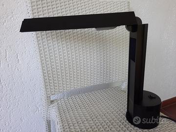 Vendo interessante lampada da tavolo, vintage degli anni 80 in materiale plastico di colore nero. Questa lampada funziona con una luce al neon e può assumere diverse forme, da chiusa assomiglia a un monolite nero, e da aperta può prendere diverse forme fino ad arrivare a sembrare una linea verticale.