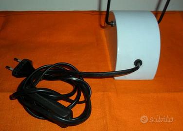 La base è a forma di mezzaluna bianca, nella parte posteriore si trova il filo di corrente nero con interruttore e spina