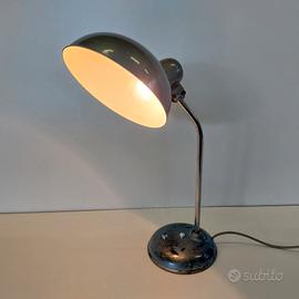 Vendo rara lampada tedesca da lavoro, industriale, della Helo-Leuchten degli anni '50 (data incisa sotto la base) lampada da tavolo Bauhaus basata su un design di Christian Dell