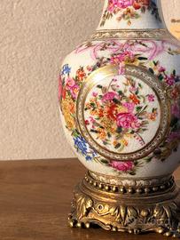 Vendo lampada da tavolo in ceramica decorata con fiori e bordature dorate