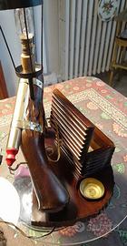 lampada da tavolo di aldo tura pseudo set da fumatore con pistola antica in legno e vari accessori posacenere portasigarette apribile portacerini perfettamente funzionante compresa di lampadina visibile al villaggio olimpico roma nord spedizioni ovunque contatti con watts app