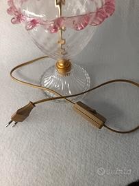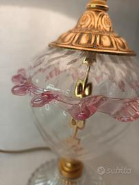 Corpo in vetro trasparente lavorato con cordonatura in vetro di Murano color rosa.