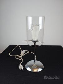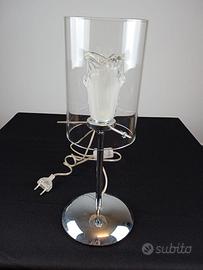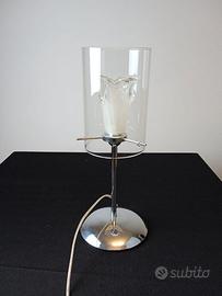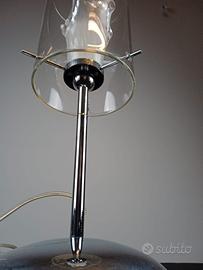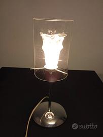 Lampada con supporto in acciaio cromato con vetro di murano trasparente con interno murano satinato bianco