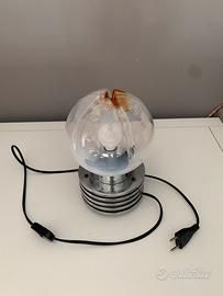 Strepitosa lampada da tavolo Space Age stile Tronconi. Vintage anni’60/70. Materiale base metallo a cerchi con paralume in vetro con lavorazione a stella e piedini in plastica. Misura altezza 25cm. Misura diametro paralume 16cm. Usata e con minimi segni di vissuto ma in piu che buone condizioni estetiche. Articolo splendido e super decorativo per amanti dell’illuminazione di modernariato di non facile reperibilità.
