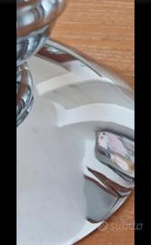 Questa lampada da tavolo, ispirata al celebre design "Bulb" di Ingo Maurer, è un pezzo affascinante e senza tempo. Materiali: La base è realizzata in alluminio cromato lucido, mentre il diffusore sferico è in vetro opalino bianco, che diffonde una luce calda e accogliente. Condizioni: Buone condizioni estetiche, con qualche segno sulla base cromata documentato nelle foto. L'impianto elettrico è stato recentemente sostituito ed è nuovo, garantendo sicurezza e funzionalità ottimali. Dimensioni: Altezza totale: 19 cm Larghezza base: 13 cm Profondità base: 13 cm Stile: Il design minimalista e iconico si adatta perfettamente a diversi stili di arredamento, dal moderno al vintage Space Age. Ideale per collezionisti o per chi cerca un punto luce di design unico e funzionale.
