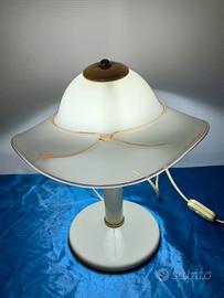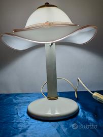 Lampada da Tavolo Tiffany in Vetro Bianco di Murano a Forma di Cappello Italia.