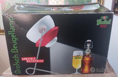 Il tappo della birra di una bottiglia Grolsch a gabbia a forma di lampada da tavolo con parte della lampada mobile. Un pezzo da collezione per il vero amante della birra. Splendida lampada per iniziare o ampliare la tua collezione. La lampada a sospensione è nuova nella sua confezione originale con la lampadina inclusa. La lampada verrà imballata con cura.