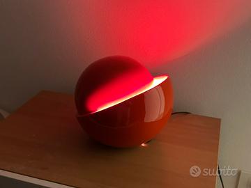 Vendo elegante lampada da tavolo sferica in stile vintage / space age, caratterizzata da una forma iconica e da un intenso colore rosso lucido.