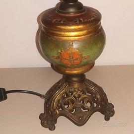 Lampada da tavolo vintage base in ottone corpo legno dipinto vetro opalizzato inciso altezza cm 45 circa funzionante cablaggio nuovo vendo eu 20,00 cell.3357827621 WhatsApp Dario