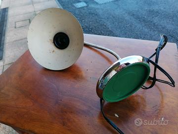 Lampada da tavolo vintage anni 60 /70 design industriale caratterizzata da braccio centrale in metallo cromato mobile per orientare la luce, paralume a cono che ricorda il cappello di strega, base in metallo cromato con pulsante accensione