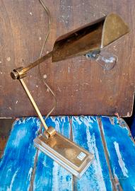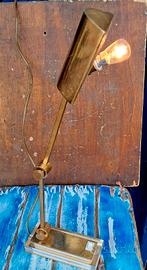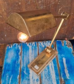 Bella lampada vintage di tipo ministeriale in ottone e bachelite Paralume orientabile in altezza e orizzontale Funzionante Con segni di usura dovuti all'età e all'utilizzo Misure: Base 17 x 7 cm Altezza max 50 cm larghezza paralume 29 cm