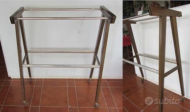 5) -- Antico tavolinetto porta televisione, tavolo per televisore misura cm. 97,5 d'altezza x cm. 78 di larghezza x cm. 37 di profondità, condizioni come da foto. Leggera ammaccatura su un piede e qualche graffio come da foto