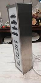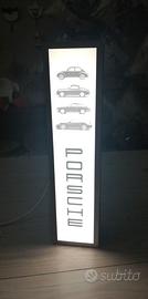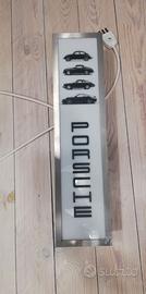 Bellissima pubblicità luminosa usata negli stand manifestazioni Porsche, raffigura 4 icone auto e la scritta Porsche.