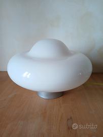 Lampada design (no Guzzini) , anni 60/70 , vetro opalino , base in metallo , diametro 38cm , altezza 28cm .