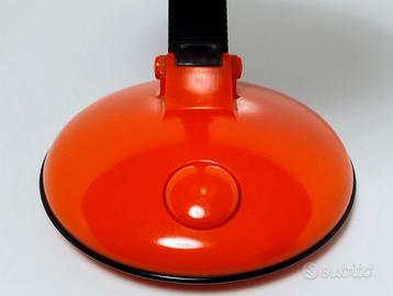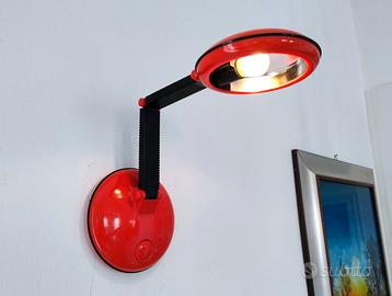 Lampada di design del famoso designer giapponese Kyoji Tanaka. Colore rosso. Originale anni '80. Perfettamente funzionante. Da scrivania, lettura o da appendere come simpatico e creativo punto luce. Funziona a batterie stilo o può essere collegata alla corrente con trasformatore a 6 volts non inclusi. Misura da estesa h 34x12,5 cm. la base Pieghevole in varie forme.
