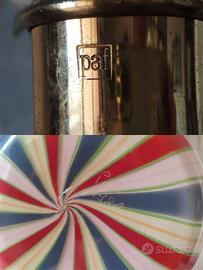 Vendo una meravigliosa lampada di Lino Tagliapietra, prod. Paf Studio in vetro di Murano. Lampada da tavolo di Murano a canne in vetro policromo, firma a punta Paf 1984, vecchia etichetta, alta cm 53, se misurata con il paralume alta cm. 80. Lampada in ottime condizioni, impianto funzionante. Ideale per collezionisti appassionati!! GUARDATE LE FOTO PER UNA MIGLIORE DESCRIZIONE. Solo consegna di persona ad Ancona e zone limitrofe concordando con massima serietà, no spedizioni. SU RICHIESTA POSSO INVIARE ALTRE FOTO