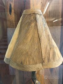 Vendo lampada da tavolo , fatta con noce di cocco come base , fusto in legno e paralume in paglia di cocco .