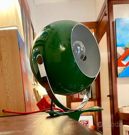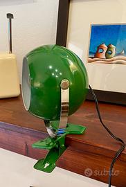Lampada Space Age “Eye Ball” anni 70 con pinza, in metallo verniciato di colore verde con interno bianco.