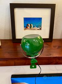 Condizioni buone compatibilmente con gli anni, presenta segni d’uso sulla superficie che comunque non ne compromettono l’estetica. Funzionante, con elettrificazione originale, monta una lampadina E15. Non è presente un marchio, forse c’era un adesivo che col tempo si è staccato,lo stile però è quello delle lampade Reggiani.