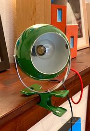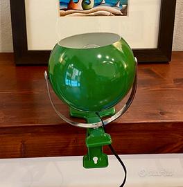 Lampada Space Age "Eye Ball" anni 70 con pinza, in metallo verniciato di colore verde con interno bianco.