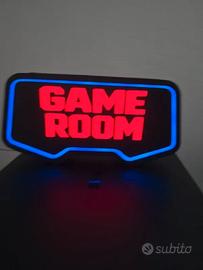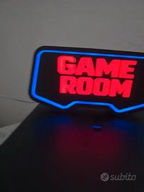 Vendo lampada luminosa GAME ROOM realizzata in stampa 3D artigianale con illuminazione LED interna.