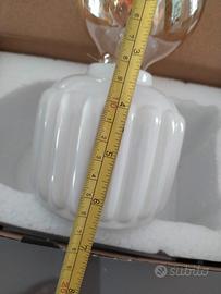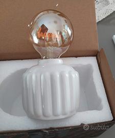 Bellissima lampada decorativa Andrea Fontebasso, con base in ceramica bianca, e la scritta "Happy" all'interno. Perfetta per creare un'atmosfera accogliente e rilassante.