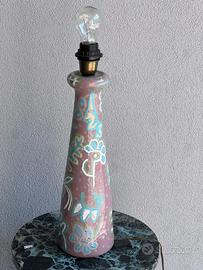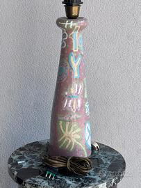 Lampada anni ‘60 in ceramica dipinta con motivi floreali. Firmata sulla base “Mangatoni Pesaro”. Altezza 47cm Larghezza base 13cm