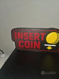 Vendo lampada luminosa INSERT COIN, realizzata in stampa 3D artigianale con illuminazione LED interna.