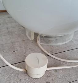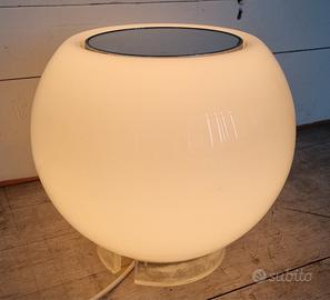 Rara Lampada vintage da tavolo Elios di Giusto Toso. Sfera in vetro soffiato di murano con specchio al centro e base in acrilico che consente di inclinarla a proprio piacere grazie alla fessura per far passare il cavo. Le condizioni generali sono ottime, lo specchio è nitido senza aloni e con segni vintage solo sul contorno, vetro intonso senza alcuna rottura, sul retro mostra ruggine sul disco in metallo che sostiene il punto luce, impianto elettrico originale, base in acrilico opacizzata. Presente 1 crepa sull'interruttore e 1 piccola scheggiatura di circa 1 cm sulla base che non si vede con sopra il vetro