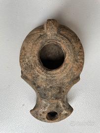 Come da foto Lampada lucerna ad olio romana di terracotta decorata con tralci di vite