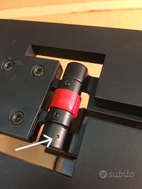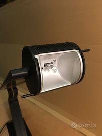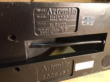 Lampada Melanos di Artemide. Design Mario Botta 1986. Funzionante, sostituito trasformatore con modello della stessa marca ma più recente e ripristinato falso contatto con piccola spina metallica ( indicata dalla freccia). Qualche leggera abrasione ma complessivamente in ordine.