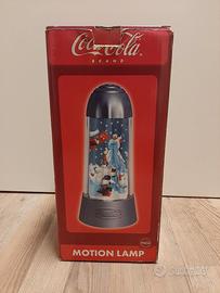 Lampada da tavolo pubblicitaria Coca Cola che oltre ad illuminarsi muove in circolo gli orsi. Diametro alla base 16 cm. altezza 36 cm. con scatola originale e istruzioni.