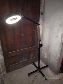 Lampada professionale con lente d’ingrandimento su stativo con ruote (tipo laboratorio/estetica).