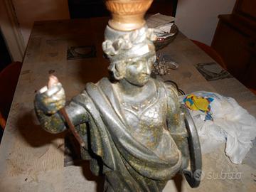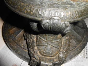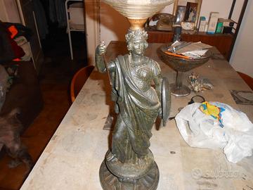 lampada savoia fine settecento inizio ottocento, con loghi savoia sullo scudo e croce celtica sul piedistallo, donna con spada, e scudo, lampada a olio, periodo esercito sardo piemontese,reperto molto raro,x comunicazioni tel. 3395084312, prezzo impegnativo,
