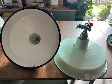 Vendo coppia di lampade smaltate. Stile industrial vintage. Porta lamapda presente. No cavi elettrici. Condizioni perfette come da foto. Vendo anche separatamente.