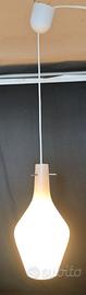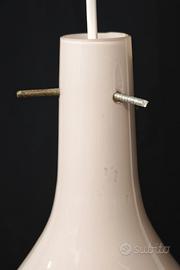Lampada a sospensione databile agli anni ’60-70, caratterizzata da una raffinata forma a bottiglia slanciata e da un vetro opalino rosato