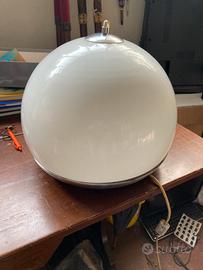 Bellissima lampada anni 70, space age, in vetro opalino ed acciaio, De Martini, Falconi e Fois per Reggiani, impianto funzionante, necessita di un supporto a vostro piacere, misure 40x40x34, non spedisco