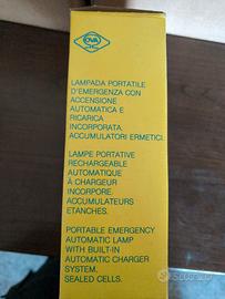 Lampada Starlux portatile d'emergenza con accensione automatica e ricarica incorporata. Accumulatori ermetici