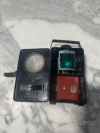 Vendo lampada delle ferrovie che veniva usata per dare il via al treno, in quanto ha un pomello sopra che girato puo' dare luce rossa o verde.Presumo degli anni '60 ,in ottime condizioni ,manca la lampadina interna e la pila,per il resto funziona tutto,senza rotture sui vetri .Il prezzo è 40 euro,No indecisi ,pezzo da collezione ,per Breda,Ansaldo,Fiat Oto Melara